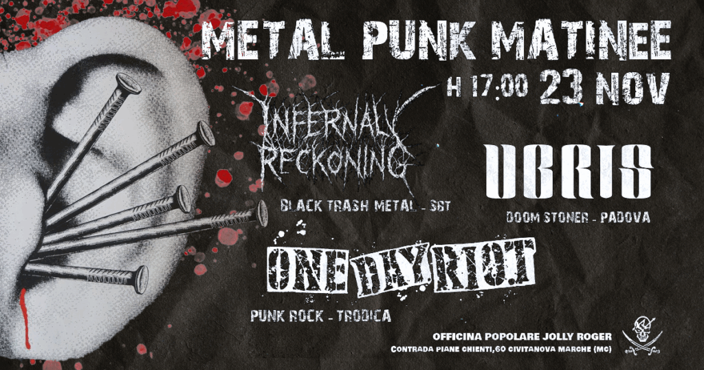 Il 23 Novembre le porte del #jollyroger si apriranno prima del solito, dalle 17 ospiteremo il #METALPUNKMATINEE ☠️